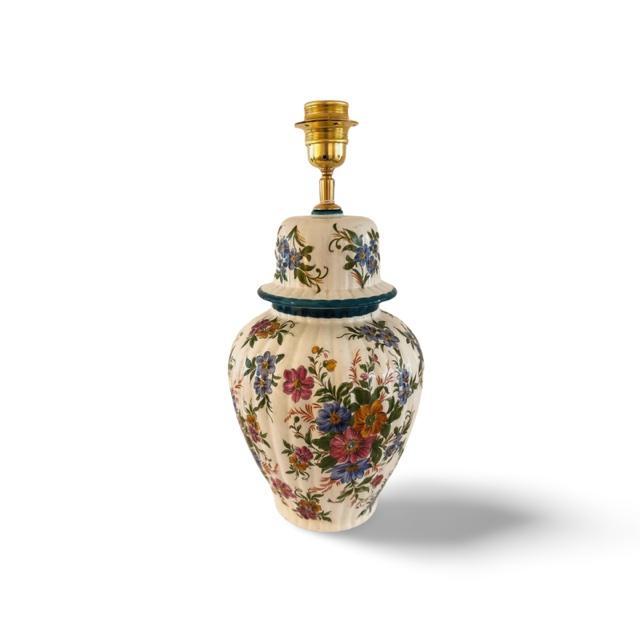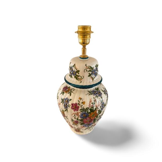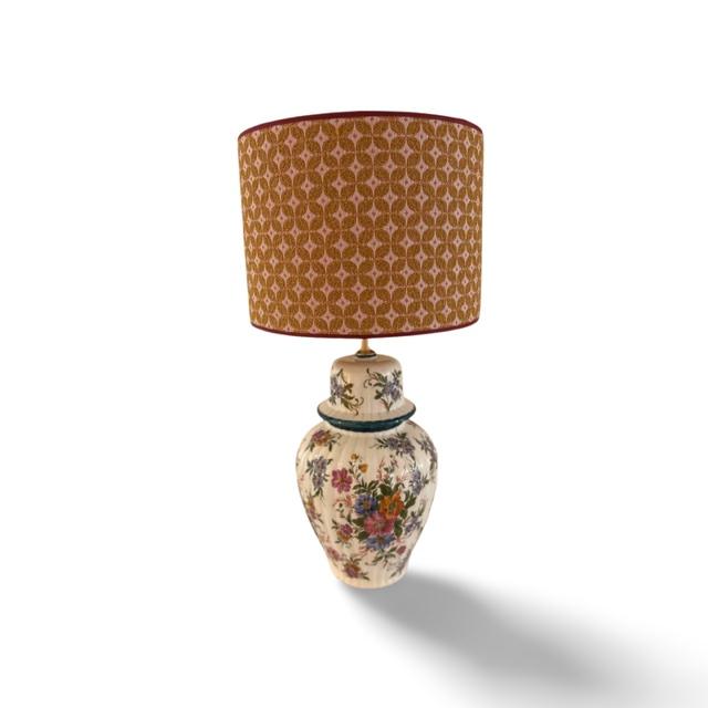 Afmeting: 32.5 cm hoog excl. fitting en 21.5 cm breedste punt lampenvoet